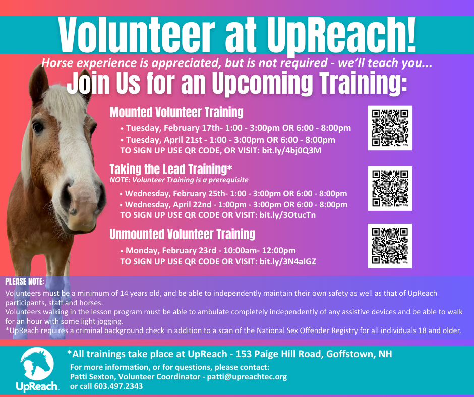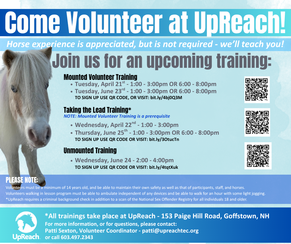 We invite you to learn more about UpReach by watching these videos - we look forward to meeting you at the barn soon!